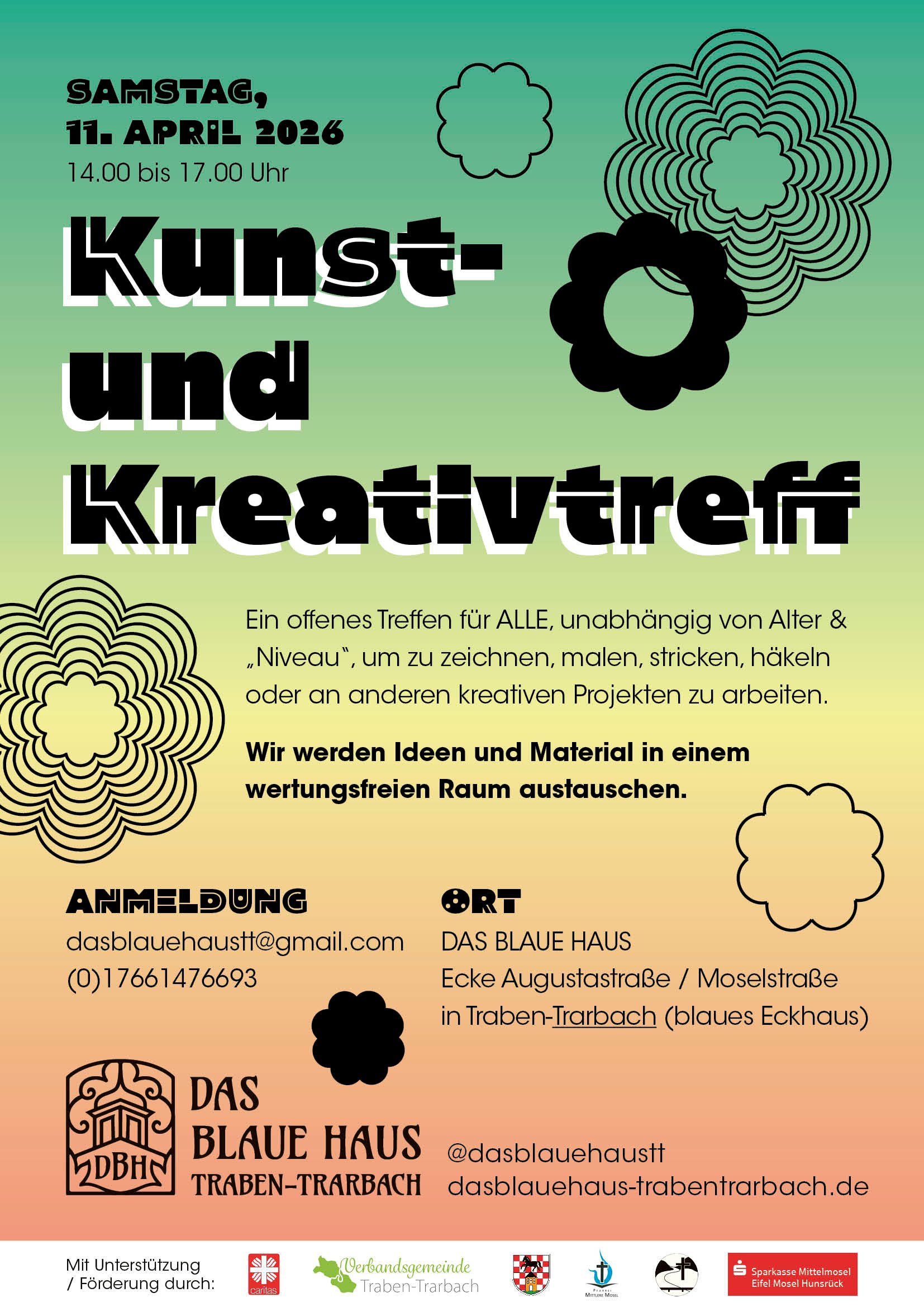 KUNST- UND KREATIVTREFF im Blauen Haus– Samstag der 11. April 2026 um 14.00 - 17.00 Uhr