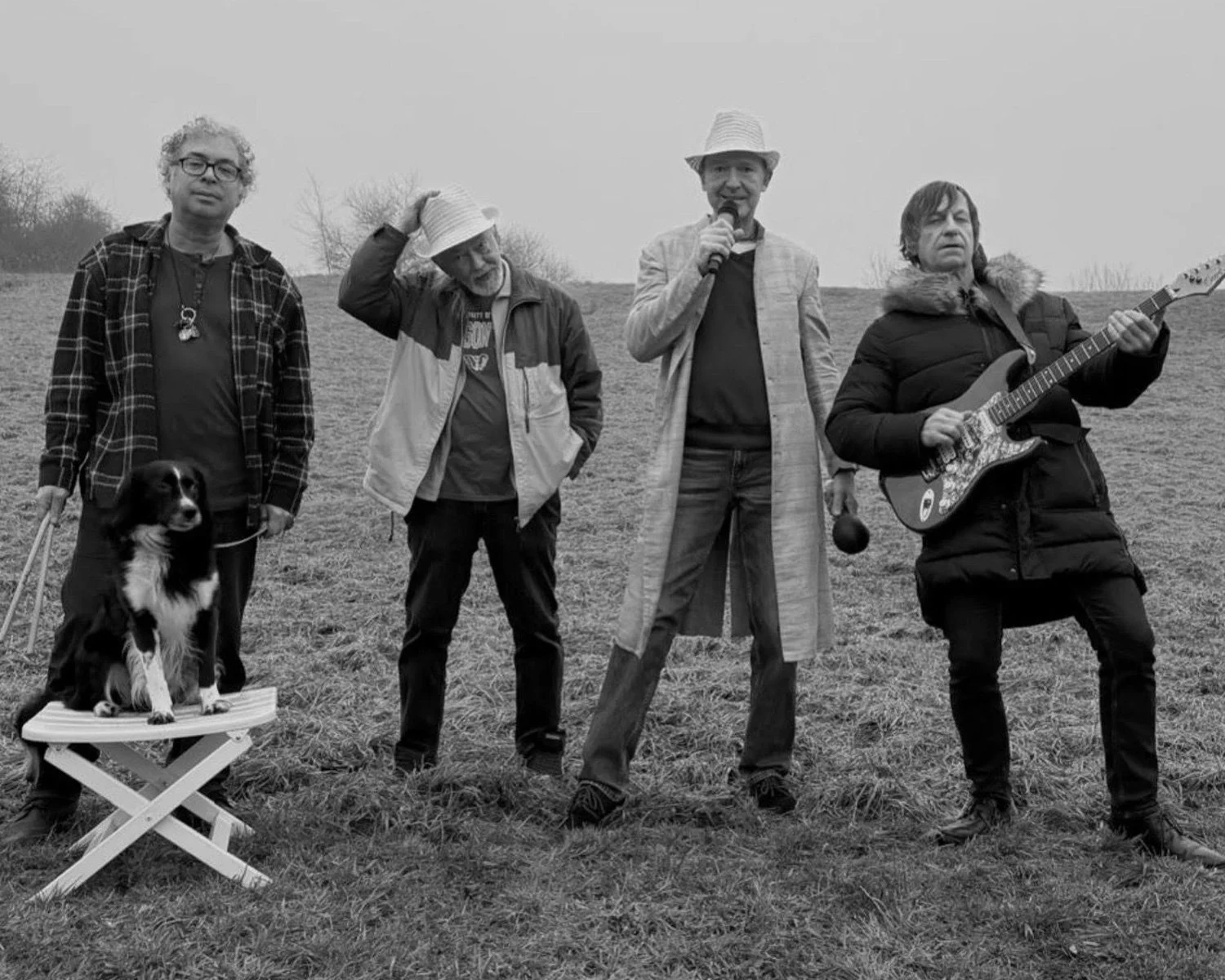 Die Vorstadt Philosophen (von links nach rechts): Carlos Flores (Schlagzeug), Gregor County (Bass), Andreas Baumgardt (Gesang), Andreas Brucker (Gittarre) und das Masköttchen Torito.